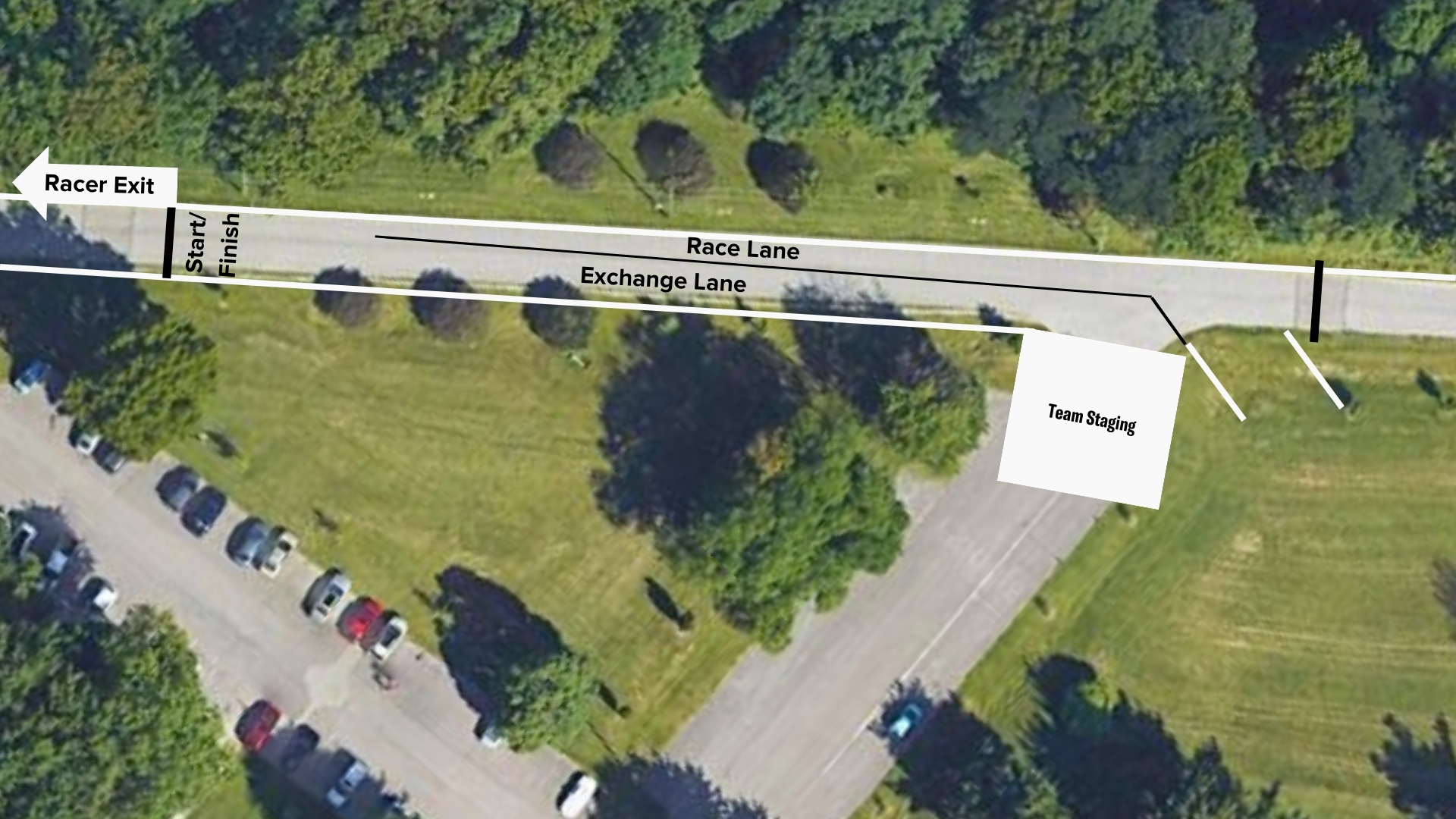 The starting rider will be called up to the finish line for the start. All other team members will be held in rider staging, which is moved to the bottom of the team parking area near the start lights, and directed by race staff to their boxes when appropriate. Collegiate teams will be assigned their boxes.