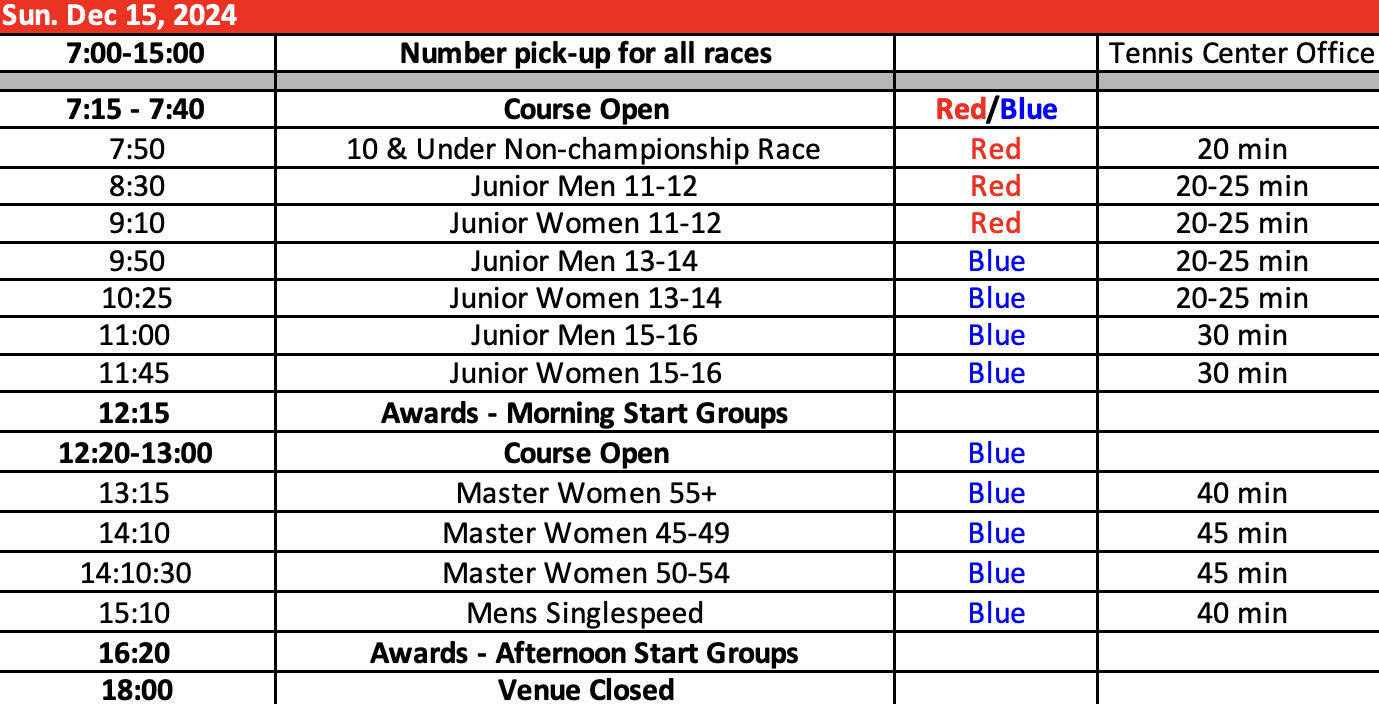 Results will be posted online after each race. The protest period is 15 minutes after posting, after which time they become FINAL. Final results will also be posted to the USA Cycling website. The link to live timing results is my.raceresults.com.