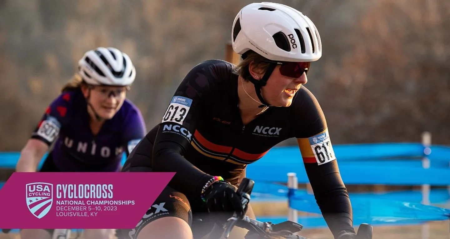 LOUISVILLE, Ky. – Warm temperatures, overcast skies, and low dew points greeted the fourth day of the 2023 USA Cycling Cyclocross National Championships took place on Friday. The Masters Women, Men’s and Women’s Singlespeed, Collegiate Team Relays, and Non-Champ Team Relay took on the 1.7-mile course with some raucous crowds. Both of the Singlespeed events came down to sprint finishes, with Kylie Small (Centennial, Colo.; Fort Lewis College) and Kerry Werner (Vinton, Va.; Bikeflights P/B Kona Adventure Team) coming out victorious.